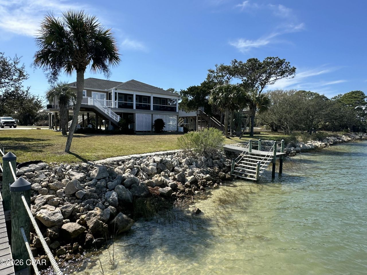 Property Description This beautifully maintained 3-bedroom, 3-bath home offers 1,584 square feet of living space, plus additional air-conditioned space downstairs not included in the square footage, providing exceptional flexibility and functionality. Originally built in 1996 as new construction, this home has been thoughtfully and extensively upgraded over the years. The property began as a blank canvas and has been transformed into a stunning waterfront retreat. Multiple loads of topsoil were added, followed by lush St. Augustine sod, creating a vibrant landscape. A private well and irrigation system were installed to maintain the beautiful grounds, along with full-home gutter installation. The downstairs area was enhanced with a cement floor, an outdoor shower, and a custom-built storage and extra bedroom unit, offering additional living and utility space. A circular gravel driveway was added and later upgraded to a full cement driveway, providing ample parking and curb appeal. Outdoor living truly shines with a custom-built seawall to protect the bayfront landscape, mature palm trees throughout the property, and two docks ? including a shared dock with a neighbor featuring a boat access ramp and breathtaking sunset views, as well as a private smaller dock off the bay yard. Inside, the home features wood flooring throughout with tile in the bathrooms and kitchen. Both bathrooms boast tile countertops with backsplash, while the kitchen is highlighted by granite countertops and a stylish backsplash. The home includes custom ceiling fans in every room, updated appliances including a newer garbage disposal, microwave, and a brand-new clothes dryer purchased this year. Additional upgrades include Trex decking and vinyl railings on the front and back stairs, enclosed vinyl porch, vinyl ceiling covering in the downstairs area, and all-new replacement windows by Window World. This meticulously cared-for home offers exceptional craftsmanship, modern updates, and remarkable waterfront living ? a truly rare opportunity.