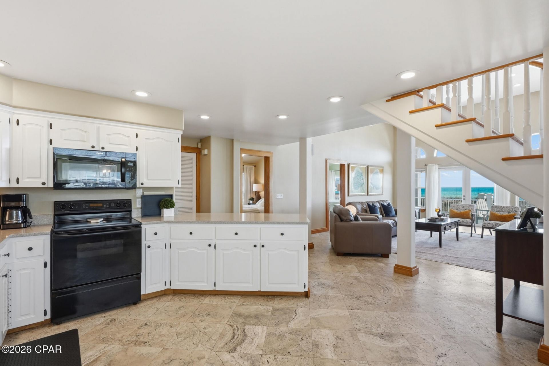 You do not want to miss this stunning 5-bedroom beachfront home in the highly sought after area of Pier Park in Panama City Beach. The spacious living area boasts vaulted ceilings and expansive windows with gorgeous views of the Gulf and its white sand beaches. Step outside to the large back deck of this home that sits on a 50-foot lot. Watch incredible sunsets and catch rays during the day as you listen to the Gulf breeze. There is a generously sized kitchen that opens to the living area. There are two dining areas downstairs making the home ideal for hosting a large family and guests. The first story offers a nice size bedroom with an ensuite bathroom and plenty of storage. The bathroom has its own jetted tub and shower. You will also find two additional bedrooms, one with Gulf views and an additional full bathroom with a separate tub and shower. The second story has a cozy sitting area along with a fourth bedroom. The third story houses a private master suite with 180-degree views of the beach and its own spacious balcony. There is a full-size master bathroom with shower and jetted tub. The garage area has storage and an enclosed laundry room. The outdoor shower is on the side of the house that wraps around from the beachside for convenience. The location is ideal! Just a few houses from Pier Park next to beach access 60. Enjoy everything the hub of Panama City Beach has to offer. Watch fireworks from your backyard and walk to the many events the area hosts. You are just steps to restaurants, shopping and entertainment. Take advantage of this unique opportunity to own a beachfront home in this coveted area of Panama City Beach!